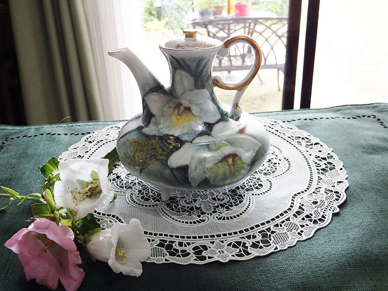 - 高さ15cmの小さい花瓶にバラの絵付けをしています一回焼成した所です。& ドレッシープレートにもバラの絵付けをしています。2度目の焼成前です。焼くと色が変わると思います。
