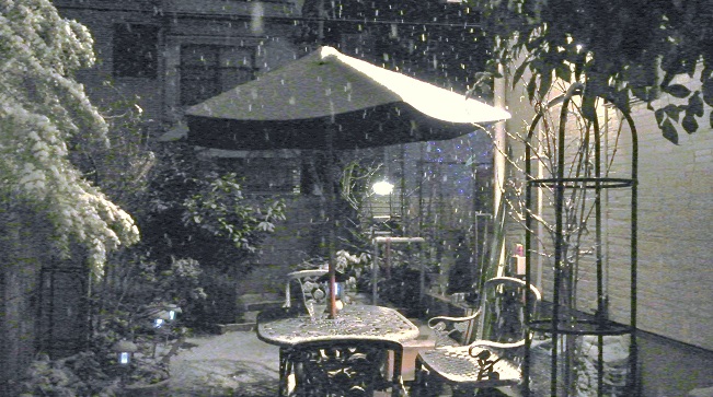 • 朝になって見る銀世界**。多分・朝方降るのでしょうね。夜中は降っていませんが・・?かなりの積雪です。ウサギさんも埋もれています。