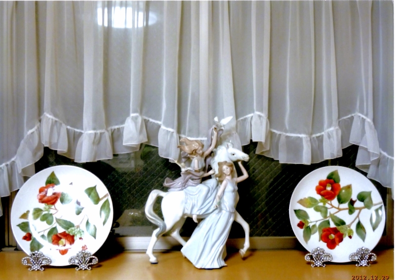 - 高さ15cmの小さい花瓶にバラの絵付けをしています一回焼成した所です。& ドレッシープレートにもバラの絵付けをしています。2度目の焼成前です。焼くと色が変わると思います。