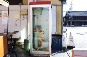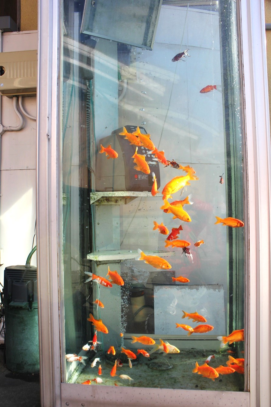 電話ボックスに・・金魚・・・とても可愛いです。(^^♪
