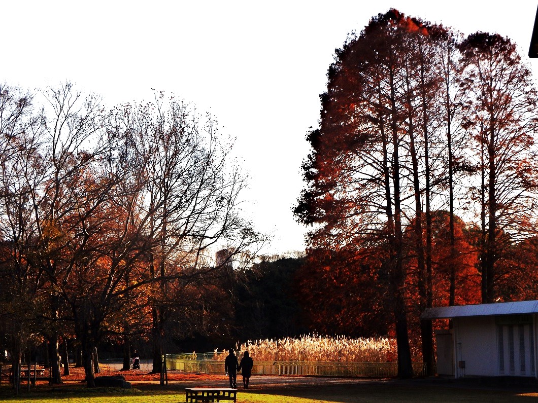 夕方はまた違った風景でした。メタセコイアも散ってしまい