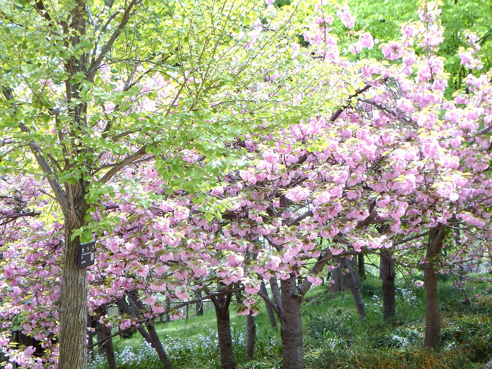 春の長居公園やはり癒されますね^^。こんな牡丹桜あるのですね。絵になります。