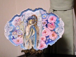 横幅40cm縦幅27㎝の大きいトレ-です。明るい花と色あいで早く明るい春が来たらいいのにな~と思って描いています。