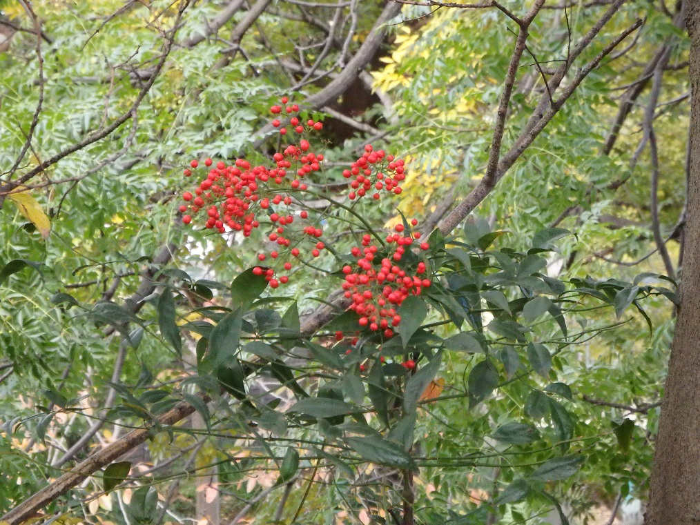 今年の公園の南天の実の綺麗なこと・・。あまり見ることもなかったけれどやっと綺麗さに気がつきました。