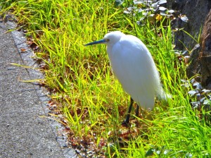 散歩の道すがらどこにでもいる鳩さんですがこんなに綺麗とは???白鷺さんも綺麗です。