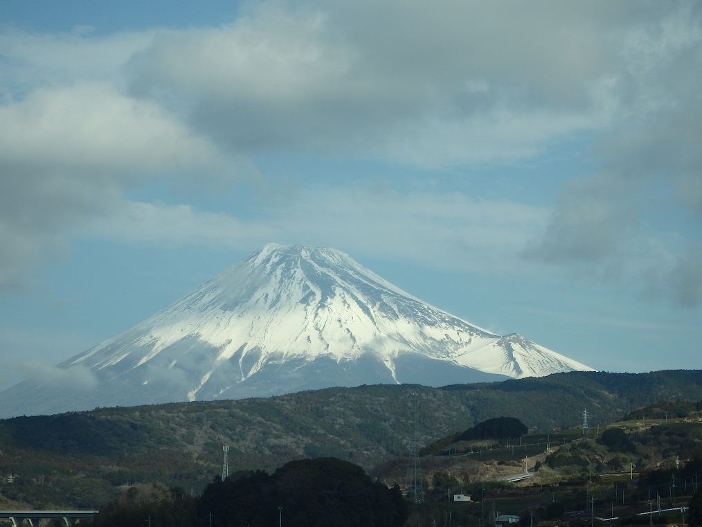からだに雪の着物きて、富士は日本一の山、車窓から上手に撮れますね(*_*)