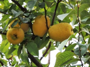 咲き花梨が実を付けて季節の移り変わりの早さを