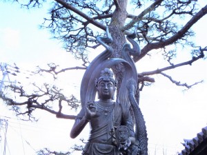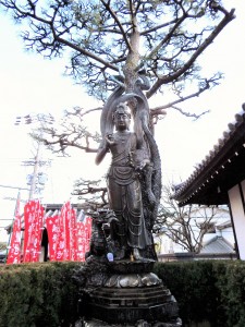 雪がチラチラですか・・寒かったですね。風も強いしね。 辛国神社様にもお詣りしましたよ.葛井寺はお庭一面 藤棚ばかりでしたよ。改めてビックリしました。 この前から気になっていた観音様でしたので手を合わせて きました。珍しいな・・と思いました。