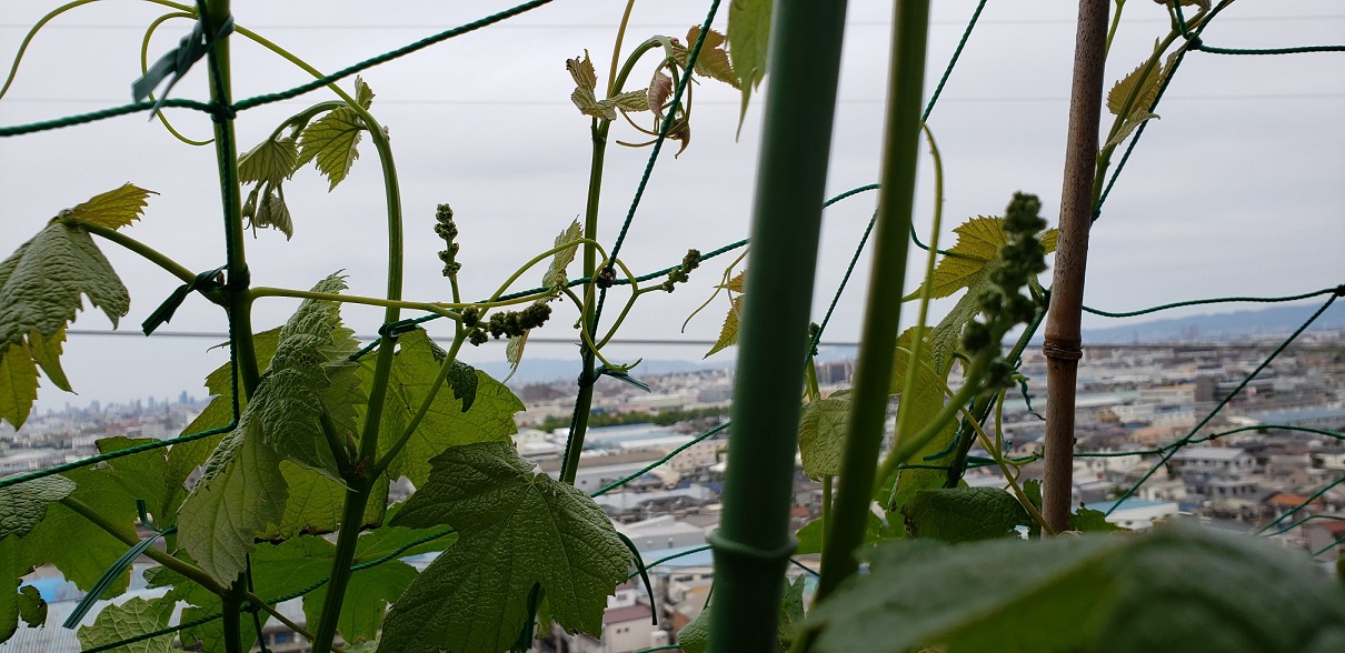植物も見晴らしのいいところで幸せですね。ブドウも