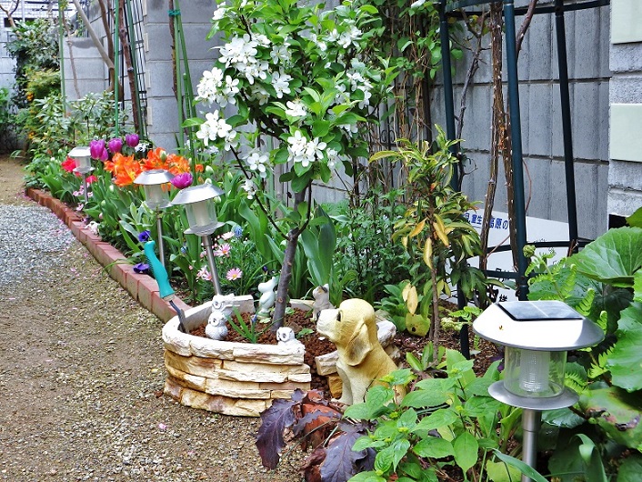- 朝になって見る銀世界**。多分・朝方降るのでしょうね。夜中は降っていませんが・・?かなりの積雪です。ウサギさんも埋もれています。
