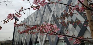 なんとも綺麗なピンクです。建物と桜が本当によく似合っています。