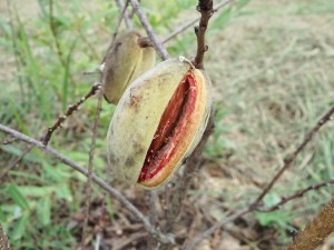 アーモンドの実が見えています。その実を割ると