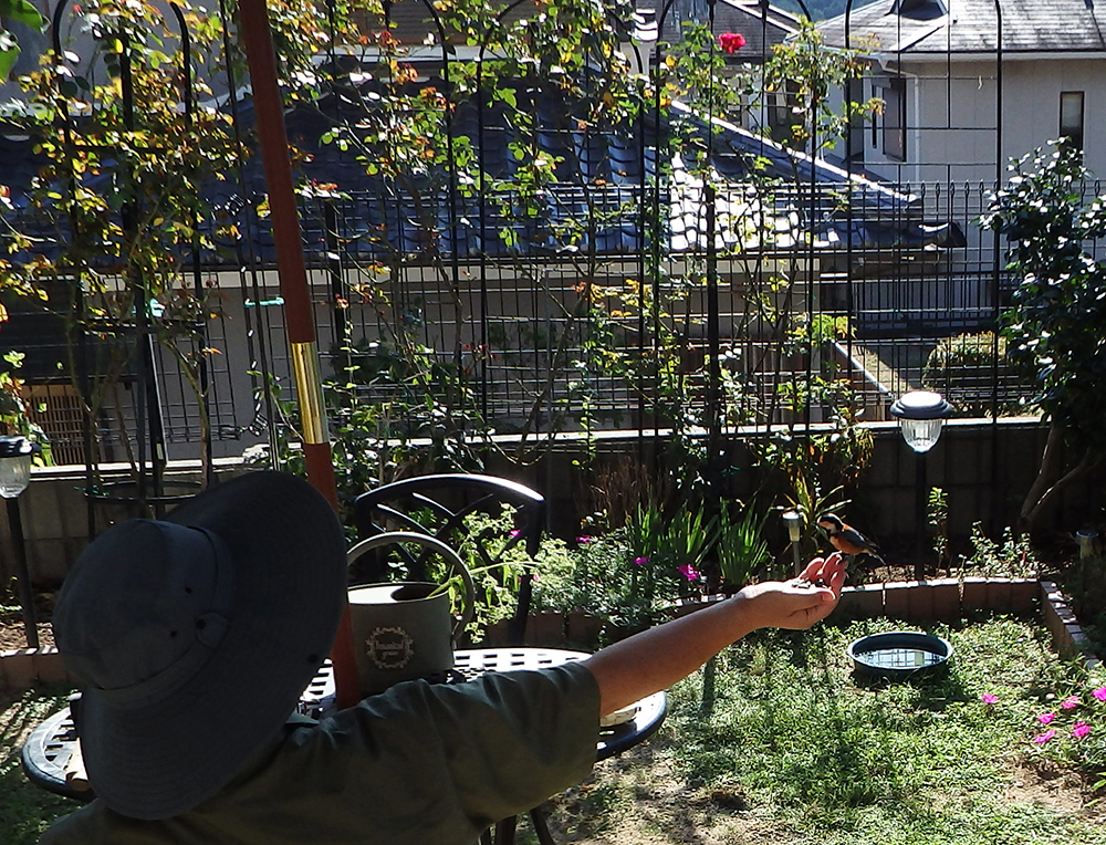 手乗りになって可愛いです、朝寝室の窓を開けると