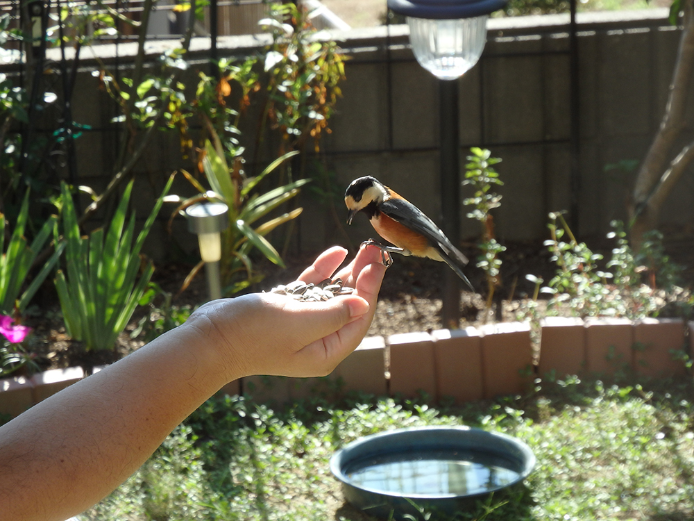 帰ってヤマガラと遊んできました