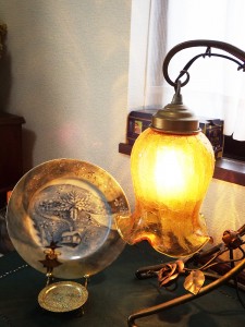 - 高さ15cmの小さい花瓶にバラの絵付けをしています一回焼成した所です。& ドレッシープレートにもバラの絵付けをしています。2度目の焼成前です。焼くと色が変わると思います。