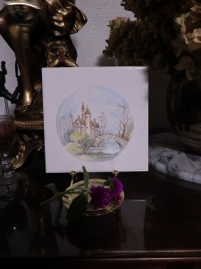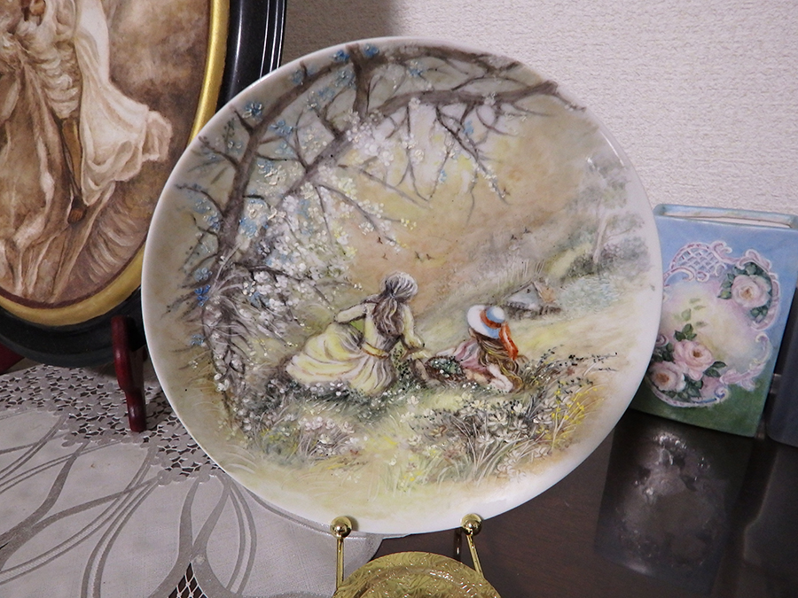 お城の絵の色合いがまだ一度目の焼成で完成素敵ですね!淡い柔らかな色合いに癒されました。高原の少女の絵も、印象的ですね。少女たちのお話しが気になります。こんな自然の高原で毎日過ごしてみたいですね。