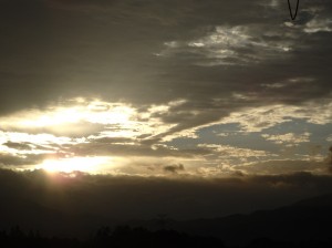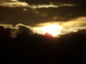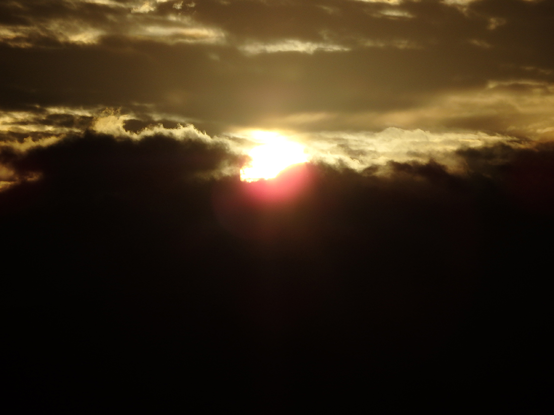 日の出でした。渋い色合いで太陽が眩しくて
