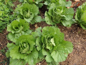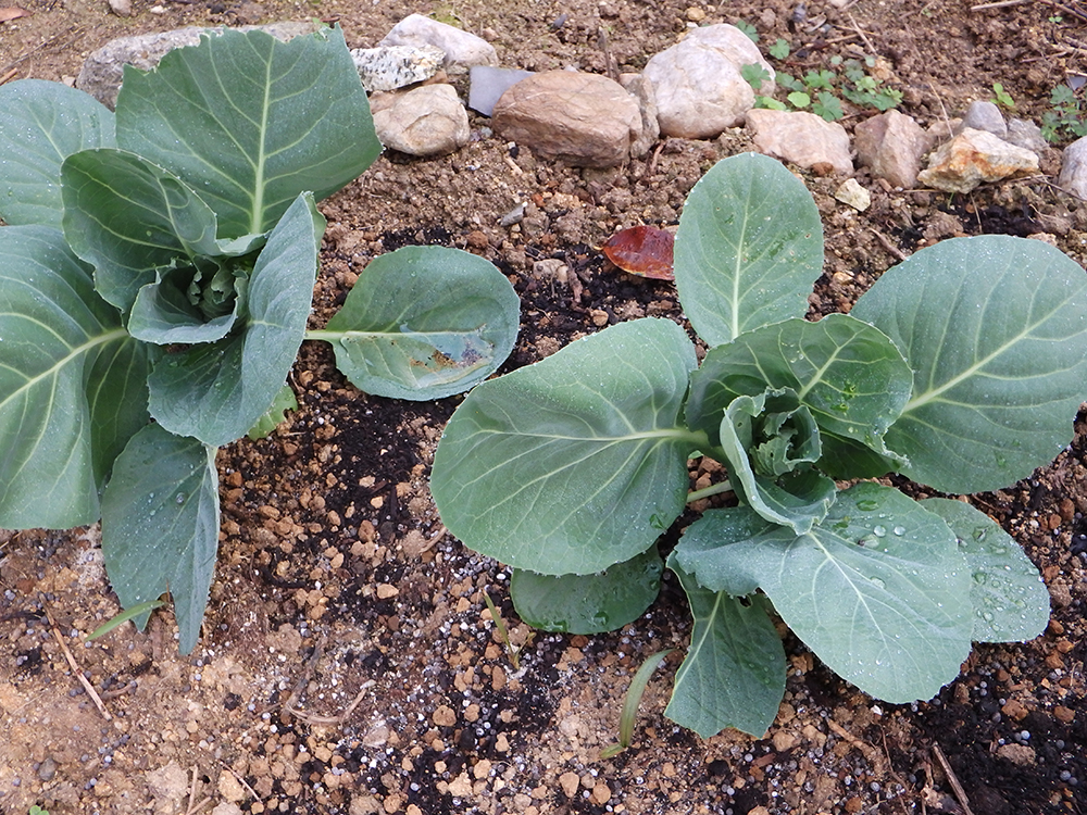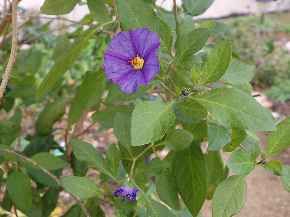 綺麗な紫の花木・ソラヌム ラントネッテイ– 難しい名前ですがよく咲きます。& 今年初めて栽培している無農薬の小型の白菜とキャベツです。どうなることやら・・。