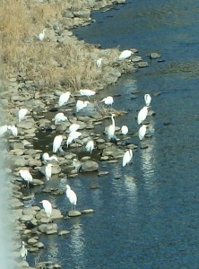今日も緑の吉野大橋を渡ることになりました。鉄橋を電車が走ってくれて可愛いです。青空が綺麗な吉野神宮駅と吉野川に沢山の白鷺たちが集まっていて綺麗でした。