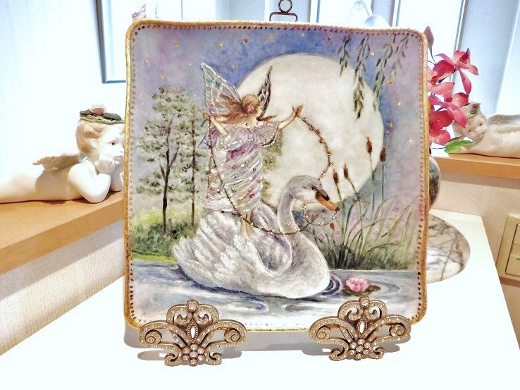 - 高さ15cmの小さい花瓶にバラの絵付けをしています一回焼成した所です。& ドレッシープレートにもバラの絵付けをしています。2度目の焼成前です。焼くと色が変わると思います。