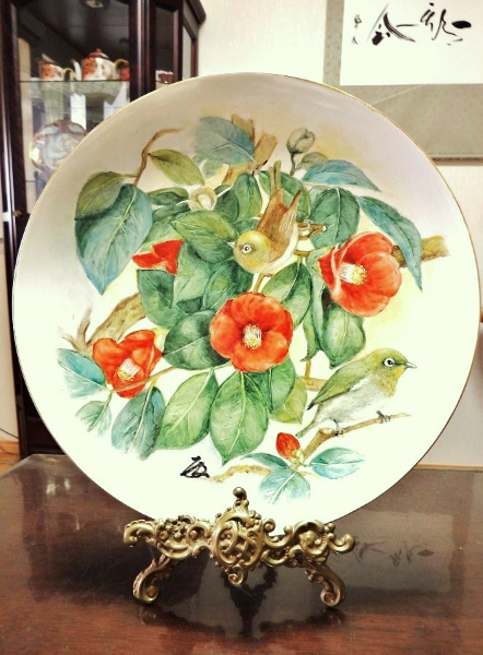 - 高さ15cmの小さい花瓶にバラの絵付けをしています一回焼成した所です。& ドレッシープレートにもバラの絵付けをしています。2度目の焼成前です。焼くと色が変わると思います。