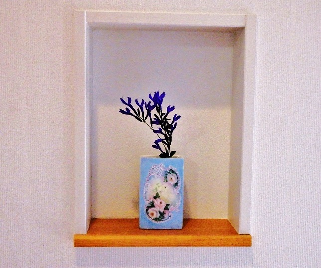 - 高さ15cmの小さい花瓶にバラの絵付けをしています一回焼成した所です。& ドレッシープレートにもバラの絵付けをしています。2度目の焼成前です。焼くと色が変わると思います。