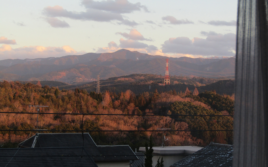 今日夕方の吉野大峰山脈・・。西陽が明るく照らしてまるで紅葉の季節のように赤く染まりました。綺麗な山々にうっとり〜〜。