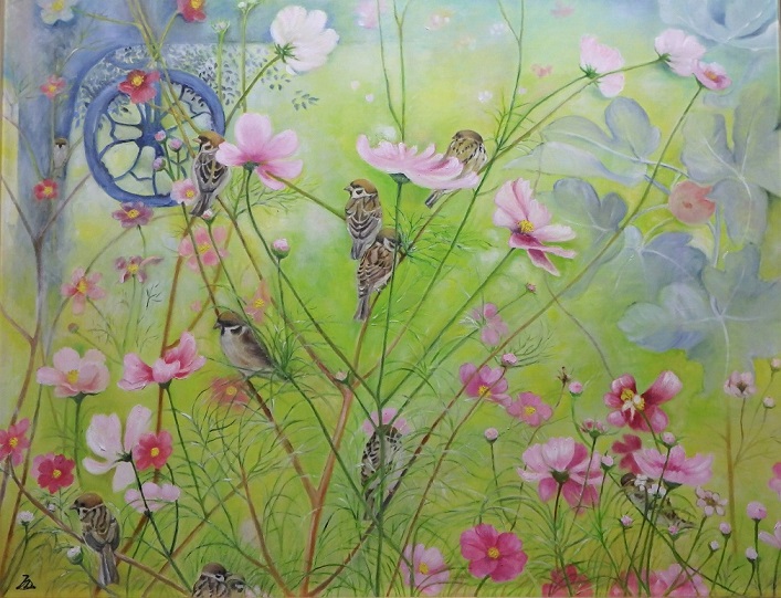 かおりこさんのお母さんのお家に赤い彼岸花の絵・飾って
