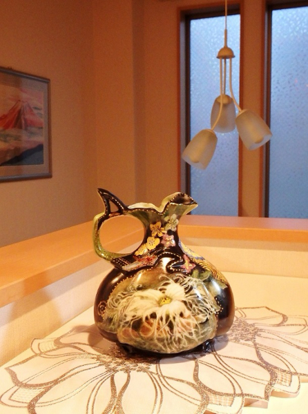 - 高さ15cmの小さい花瓶にバラの絵付けをしています一回焼成した所です。& ドレッシープレートにもバラの絵付けをしています。2度目の焼成前です。焼くと色が変わると思います。