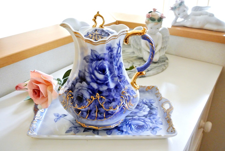 ブルーで書かれた薔薇の花を見ているだけでなでか落ち着きます、本当に上品な作品ですね。これは家に似合わないな~(^v^)
