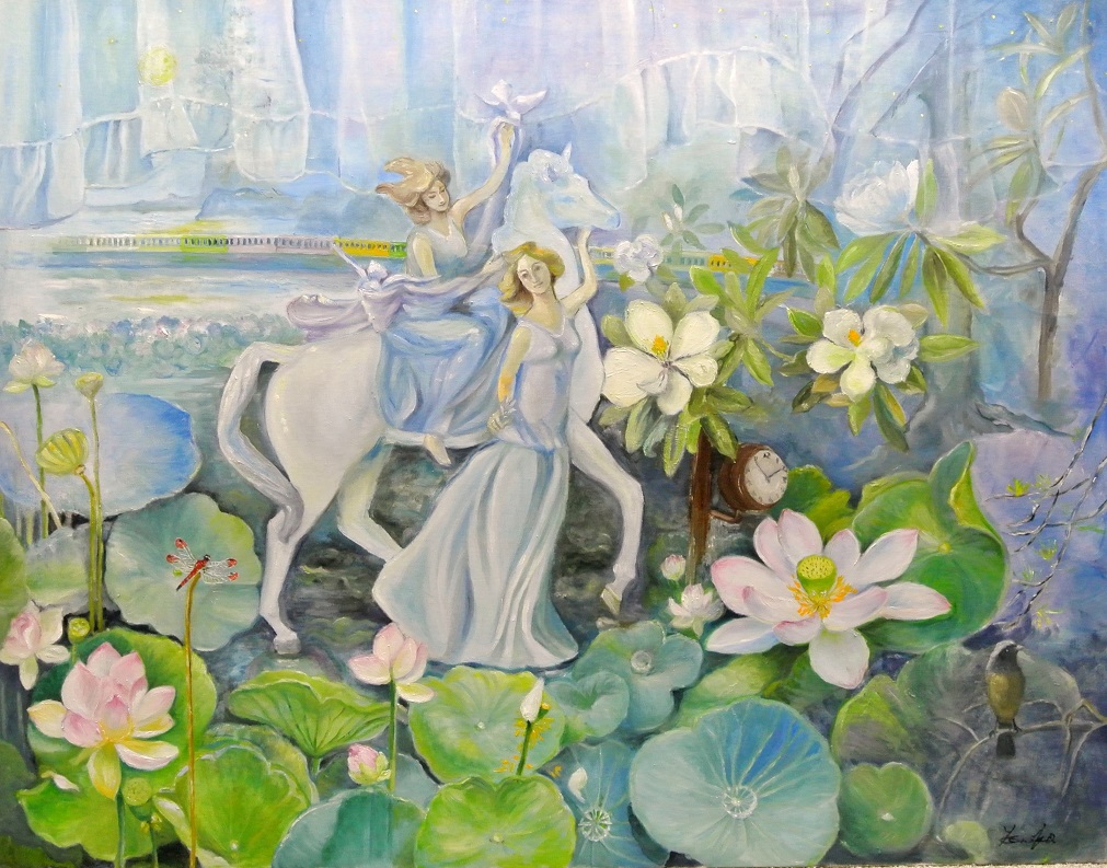 有り難う…いっぱい褒めて頂いて*恥ずかしいです。 馬に乗ってる女性は鳥も止まり何か華やかで、反面 馬の顔を触っている女性は小さい葉っぱを手にしていて 切ない表情に見え…(馬は寂しい目をしていて・・・) そういう物語かなと思ってね・・・(*_*;