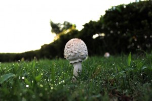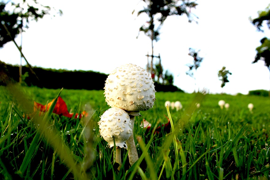 露と白いキノコ・・・とても早朝の爽やかさが伝わって来る