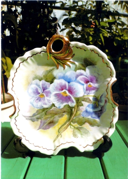 - 高さ15cmの小さい花瓶にバラの絵付けをしています一回焼成した所です。& ドレッシープレートにもバラの絵付けをしています。2度目の焼成前です。焼くと色が変わると思います。