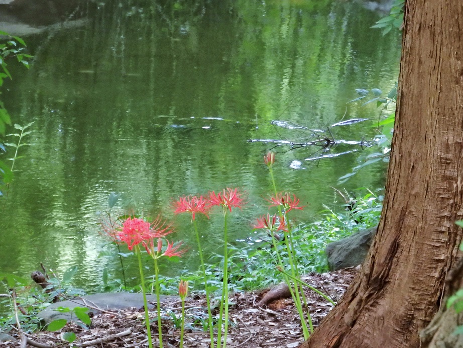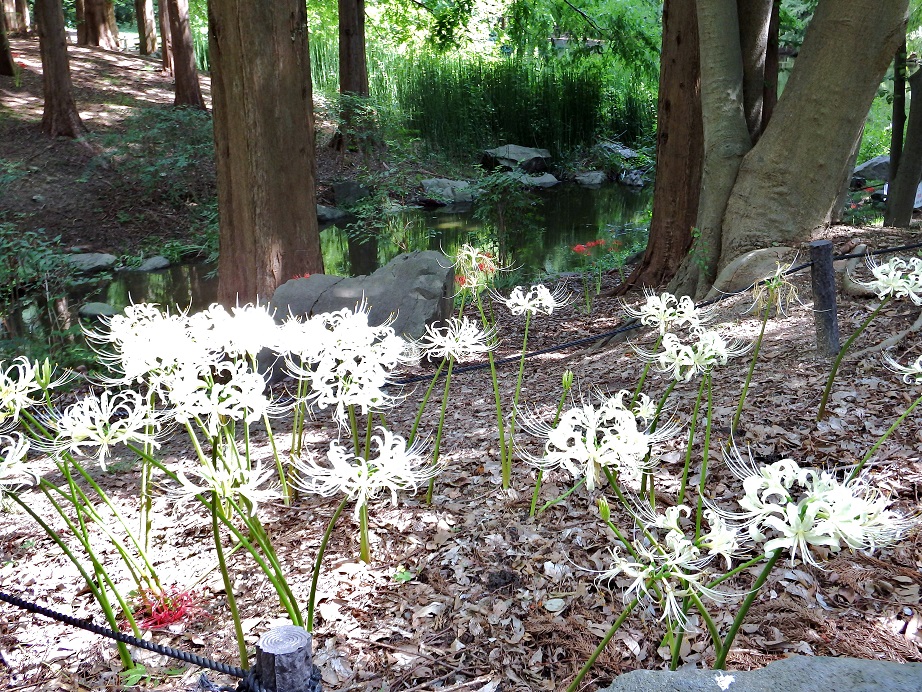 長居植物園の赤と白の曼珠沙華…メタセコイアの池のほとりです・・・。水辺の曼珠沙華も良い感じです。