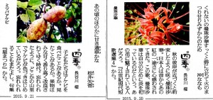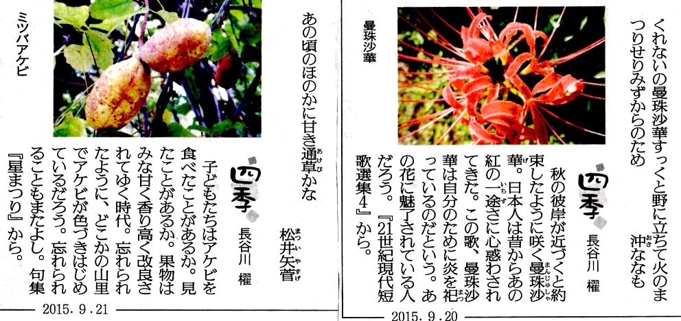今の時代のお子さんは、アケビはほとんど知らないでしょうね……。 昔はスーパーでも見られたのですが……。 曼珠沙華の花も、本当に燃える火のような感じですよね。 遠くからでもすぐわかります。